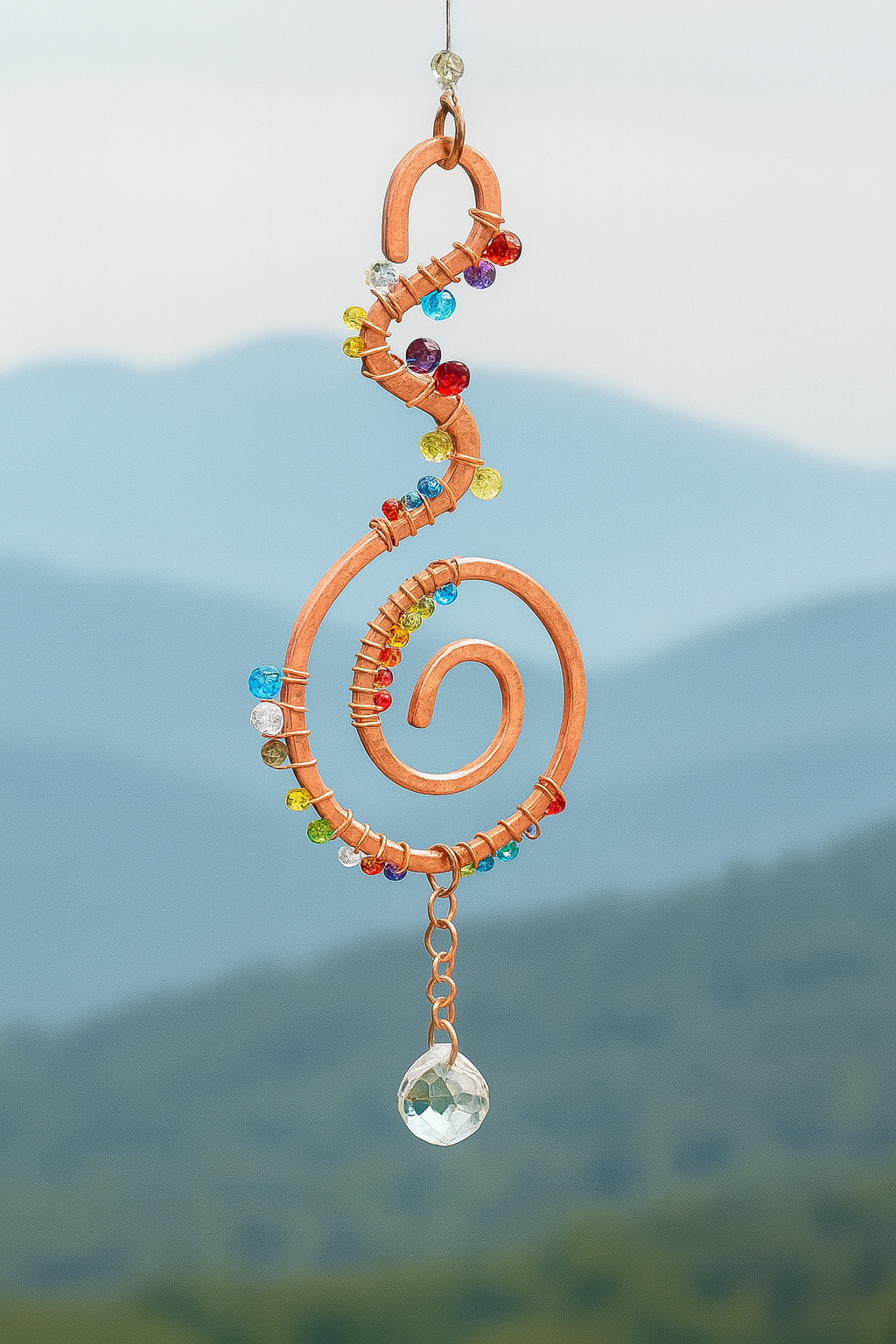 Create your own luminous sun catcher in this calming, hands-on workshop inspired by nature, light, and intentional craftsmanship. Using 12, 14 or 16 gauge copper wire, you’ll learn to shape and gently hammer your design—whether a circle, a flowing organic form, or a symbolic motif—before adorning it with crystal and glass beads that catch and scatter the light.